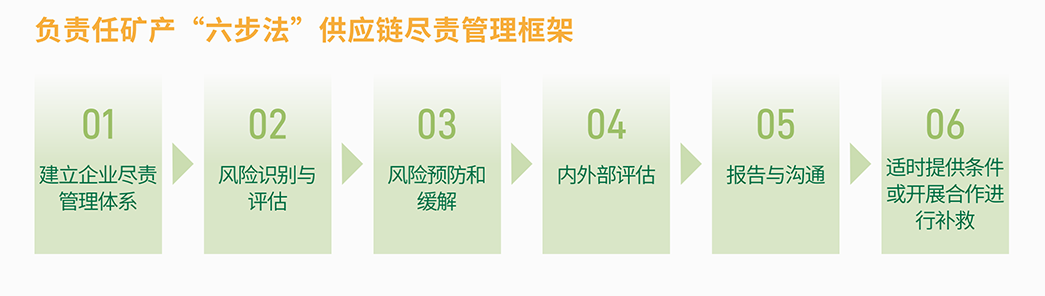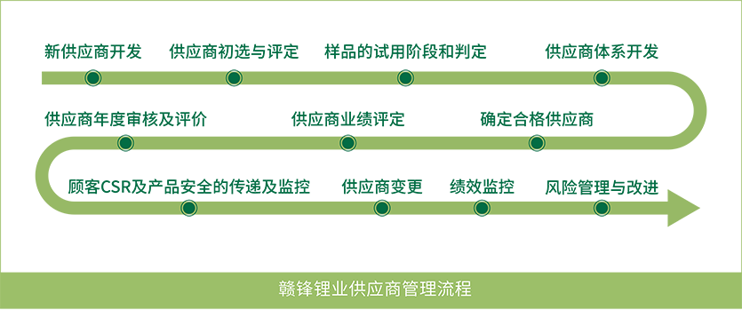 公司遵循《經(jīng)濟(jì)合作與發(fā)展組織受沖突影響和高風(fēng)險(xiǎn)區(qū)域礦石負(fù)責(zé)任的供應(yīng)鏈盡職調(diào)查指南(第三版)》《中國對外礦業(yè)投資行業(yè)社會責(zé)任指引》《中國礦產(chǎn)供應(yīng)鏈盡責(zé)管理指南(第二版))等文件,于內(nèi)部制定了《負(fù)責(zé)任礦產(chǎn)資源供應(yīng)鏈管理政策》等文件,并基于政策要求供應(yīng)商簽署《供應(yīng)商行為準(zhǔn)則》《不使用沖突礦產(chǎn)承諾書》邀請供應(yīng)商填寫礦物報(bào)告、KYS 等調(diào)查表,引導(dǎo)和規(guī)范上游鋰礦供應(yīng)商行為,完善鋰供應(yīng)鏈盡責(zé)管理,鼓勵其承擔(dān)更多的環(huán)境和社會責(zé)任。